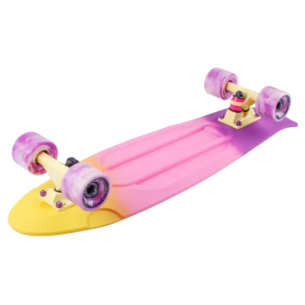 Скейтборд пластиковый TRICOLOR 27" розовый - компактный и эргономичный стал лидером продаж этого сезона. Совершенные технические характеристики прочность и надежность скейтборда привлекли внимание продвинутых райдеров. Техника создана для обычного и экстремального катания. Рассчитана для пользования в черте города и парковой зоны. Купить пэнниборд по цене производителя предлагает наша компания.