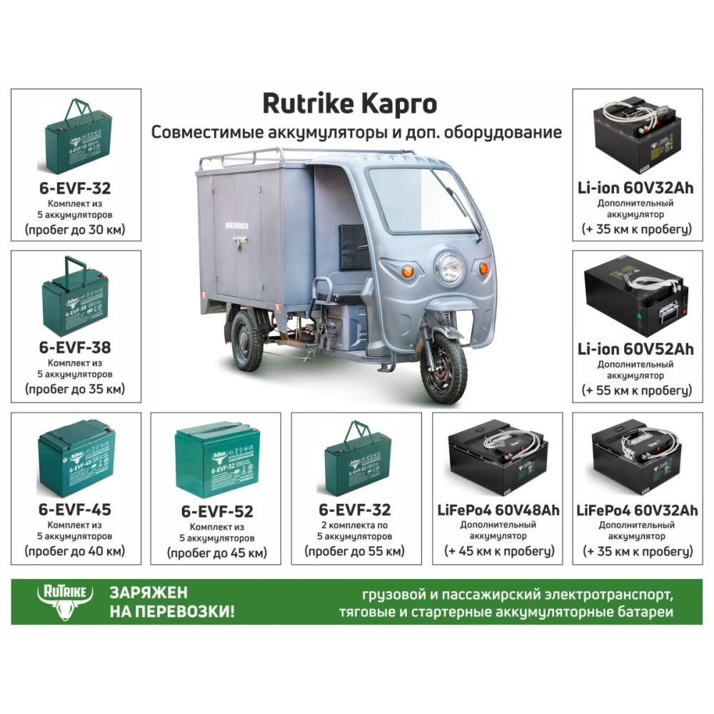 Вариант 4:Тяговый аккумулятор RuTrike 6-EVF-32 (12V32A/H C3) (2х5)