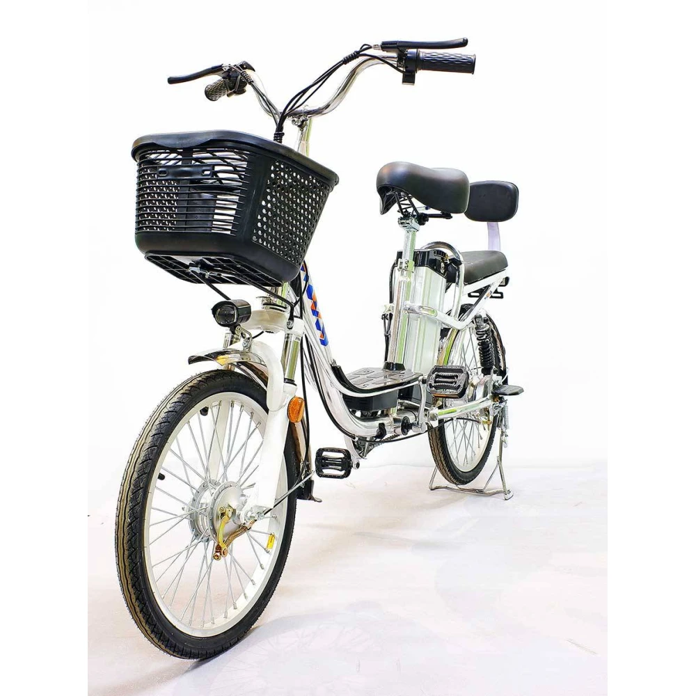 Электровелосипед GreenCamel Транк-2 (R20 350W 48V) Алюм 2-х подвес – выглядит современно и приметно. О такой комплектации мечтает начинающий и профи-райдер. Техника практичная во всех смыслах слова. Обустроена необходимыми элементами для активного время провождения. Оснащена вместительной передней корзиной, в которой удобно перевозить продукты и другие вещи. Имеет второе пассажирское сиденье. Наличие мягкой спинки увеличивает степень комфорта, допускает перевозку детей. Модель может использоваться в качестве повседневной, для поездки в магазин, ежедневных вылазок и поездки с ребенком в садик или другое место.