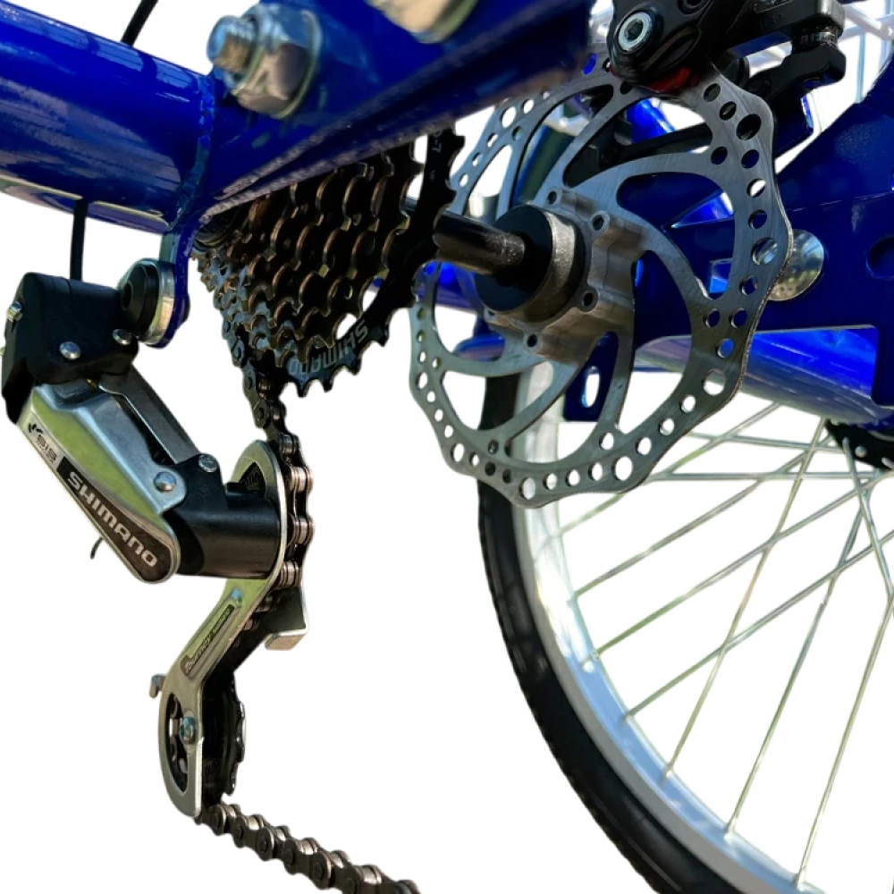Мотор BLDC 350 Вт (переднее мотор-колесо): Разгон до 25 км/ч, подъём 15% под нагрузкой — уверенно на холмах. АКБ литиевый NMC 48V 12Ah: 576 Вт·ч, заряд 7-8 ч (2A), реальный пробег 40 км (город 30 км, груз 20 км). 3 режима ассистента: эконом (20 км/ч, 40 км), стандарт (25 км/ч, 30 км), мощный (25 км/ч, 25 км). V-brake спереди + диск сзади — тормозной путь 4 м. R24 шины — энергоэффективны на асфальте.